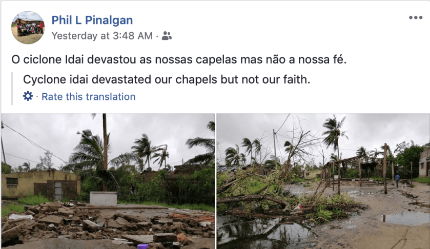 O ciclone Idai devastou as nossas capelas mas não a nossa fé.
