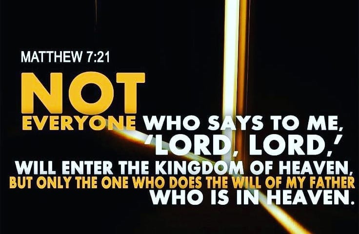 Jesus offers a provocative statement that sharpens the discussion regarding true discipleship. “Not everyone who says to me ‘Lord, Lord’ will enter the Kingdom of heaven, but only the one who actually does the will of my Father…” In other words, faith without works is dead. For Jesus, it is the manner in which life is lived out that demonstrates whether or not someone is honestly one of his people, his true disciples. Words, apparently, do not matter that much.