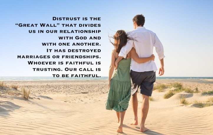 Distrust is the “Great Wall” that divides us in our relationship with God and with one another. It has destroyed marriages or friendships. Whoever is faithful is trusting. Our call is to be faithful. Without trust, we cannot be called the “lay faithful.”