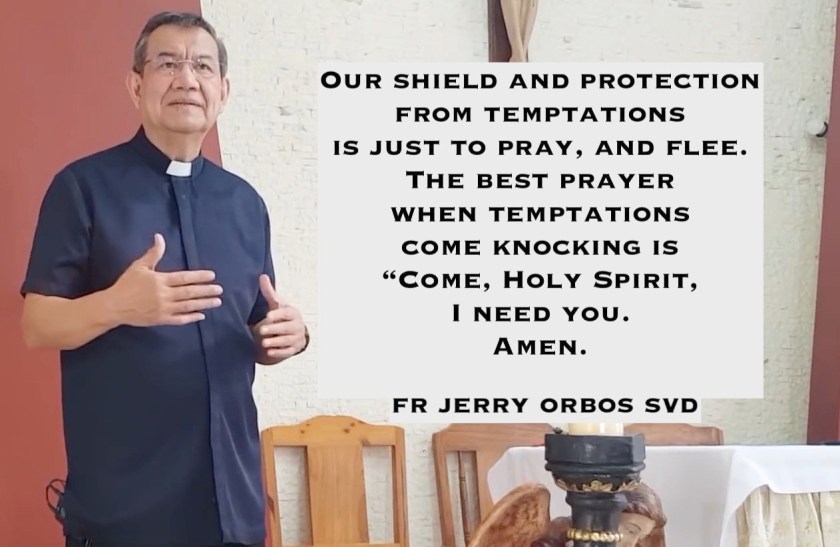 The evil one is known as the master of deceit and half-truths, and he makes his move in very subtle ways, and strikes us in our most unguarded and fragile moments. Our shield and protection from temptations is just to pray, and flee. The best prayer when temptations come knocking is “Come, Holy Spirit, I need you. Amen.”